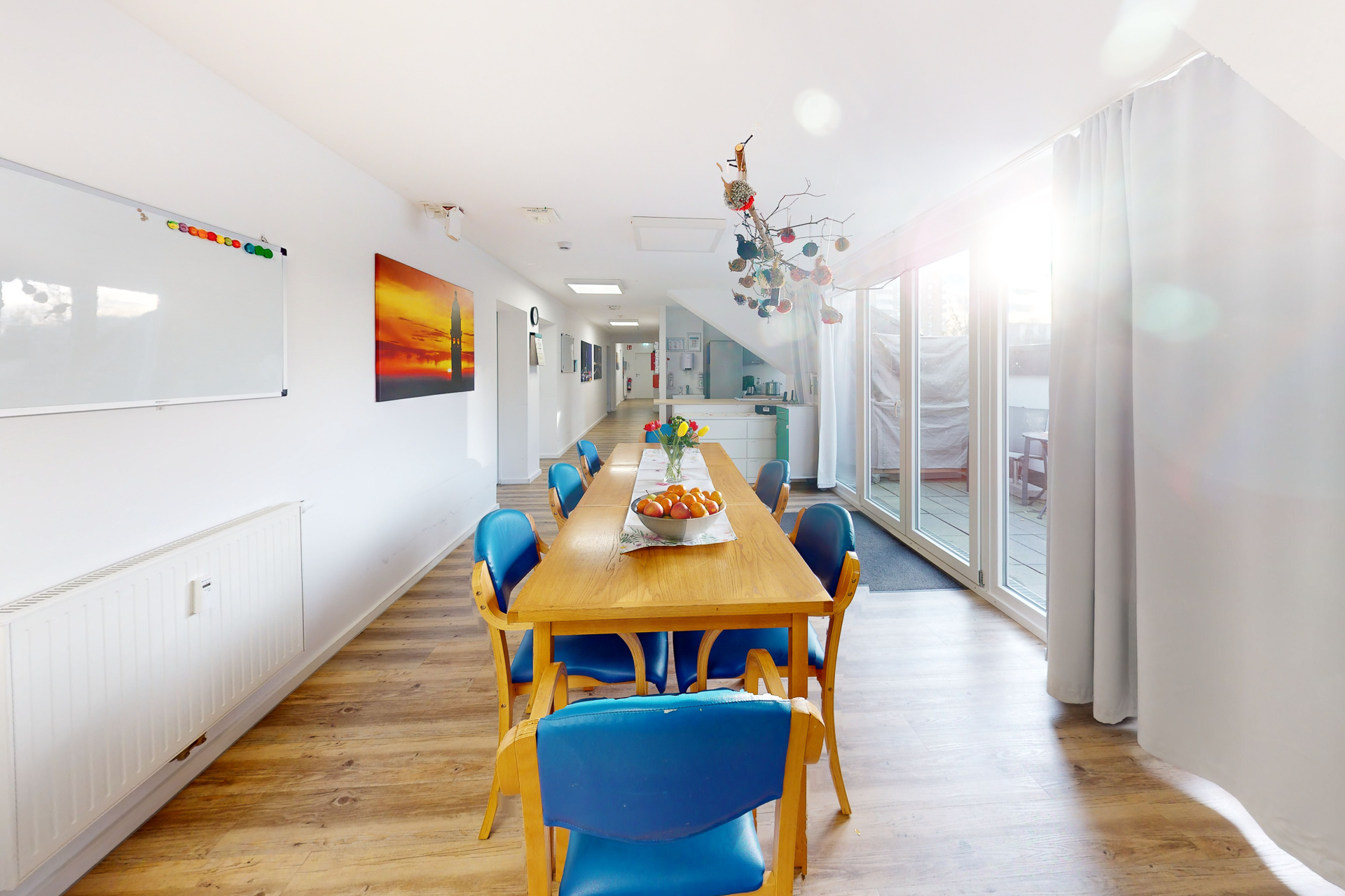 Eine Linimed NRW WG ist eine Wohnung in der Größe von 220 bis 500 qm. Sie besteht aus 6–12 individuellen Zimmern mit eigenem Badezimmer oder Tandembadezimmer (für zwei Nutzer), einer Küche oder einer großen Wohnküche mit großem Gemeinschaftsraum. Das Herzstück unserer WG‘s ist der große Gemeinschaftsraum.